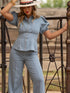 A timeless classic with a touch of glam, this puff sleeve chambray button-down brings effortless charm to your everyday wardrobe. Crafted in soft, lightweight chambray, it features romantic puff sleeves and shimmering gold detailing that elevates this casual staple into something truly special. The structured button-front keeps it polished, while the feminine silhouette adds a modern twist.