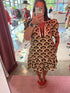 What a cute transition into Fall with the pretty brown & chartreuse floral with orange accents. The flounce at the bottom gives it a chic style. Poof sleeves with a cuff hit just above the elbows. Zipper front and pockets, of course. Fully lined.