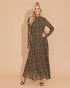 Long sleeve maxi dress in sheer leopard. High neckline for drama! Slight dropped waist with a gathered skirt. Bodice & skirt are fully lined. Super comfy elegant dress for the upcoming season.