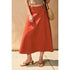 It's giving the cutest color combo EVER! Orange + Tan is such a FUN + easy color comb to style! Pull on with elastic back waistband and coordinating belt! Midi length perfect for Fall