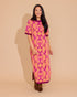Beautiful knit short sleeved dress in a vibrant serpent print. Contrasting cuffs and collar and interest to the all over print. Side slits to dance the night away. You are sure to make a statement in this unique dress in a classic shape & fit.