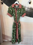 This is the perfect summer to fall dress in a gorgeous olive botanical print. The contrasting trim along the collar, front button placket, belt and sleeves add that bit of charm we all love.  Pretty poof sleeve hit right above the elbow. Belt or no belt for 2 different looks. She is completely lined so you can feel comfy & confident is every occasion.