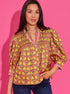 With puff sleeves, small looped detail on the cuffs, and tunic style seams on the sides, this silhouette makes a moment out of even simple blue jeans. Come try on the Blake top!