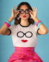 A nod to the greatest fashion icon of all time Iris Apfel. Her iconic glasses and red lips adorn this gorgeous short sleeved sweater. Sure to be your fav of the season. Runs Large