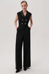 Sophisticated and sculptural. The Onyx Jumpsuit’s sleeveless silhouette and sharp tailoring are enhanced by stretch-infused fabric and refined shirt collar. Tuxedo detailing down the trouser legs, rhinestone buttons and pockets make it classic and timeless. Layer a blouse under or a jacket over for the office and bare arms for the nighttime!